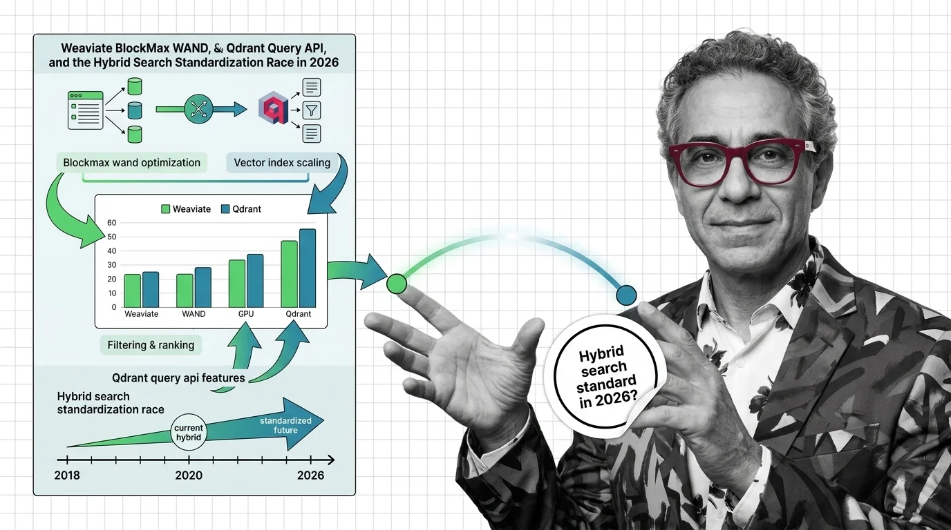 Q: Where is hybrid search heading in 2026 and which vendors are setting the standard? A: Toward a commoditized baseline: dense plus sparse plus RRF behind one endpoint. Weaviate sets the lexical-throughput bar with BlockMax WAND, Qdrant sets the API shape with the Query API, and Postgres extensions set the floor. The race moved from “support” to “speed and economics.”